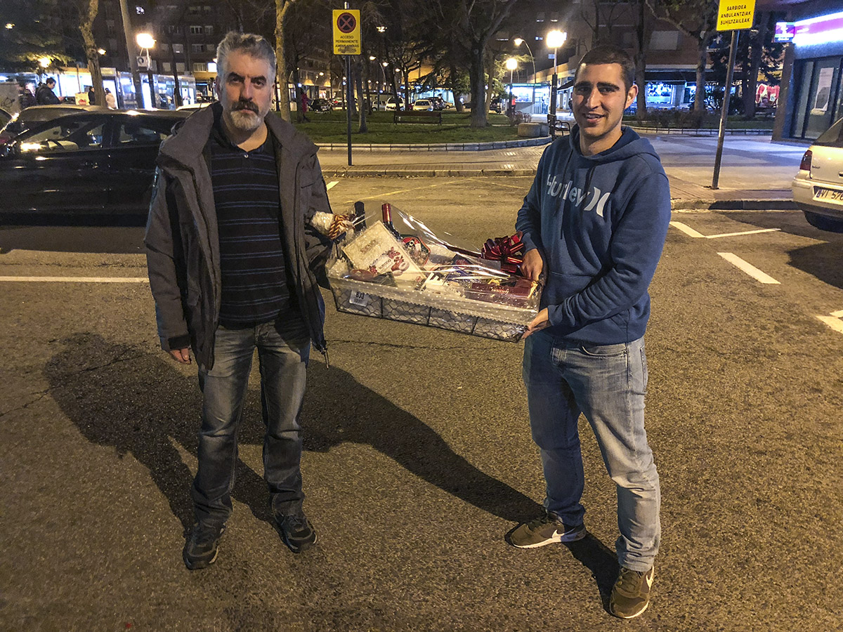Al término del taller de bodegón navideño se realizó el sorteo de la cesta de Navidad. Como mano inocente le tocó al último socio , Javitxu, que se presentó al taller, sacando el papel del socio 222 Mikel González, enhorabuena Mikel !!!